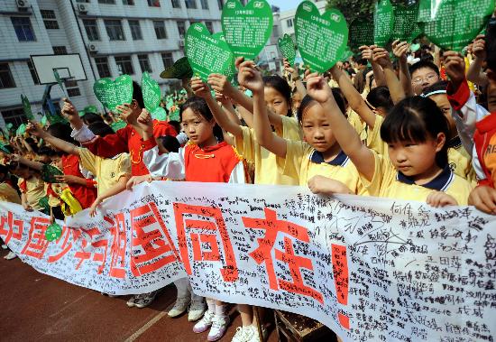 Across China at 2.28 PM today: Children for the children perished in the Great Sichuan Earthquake.